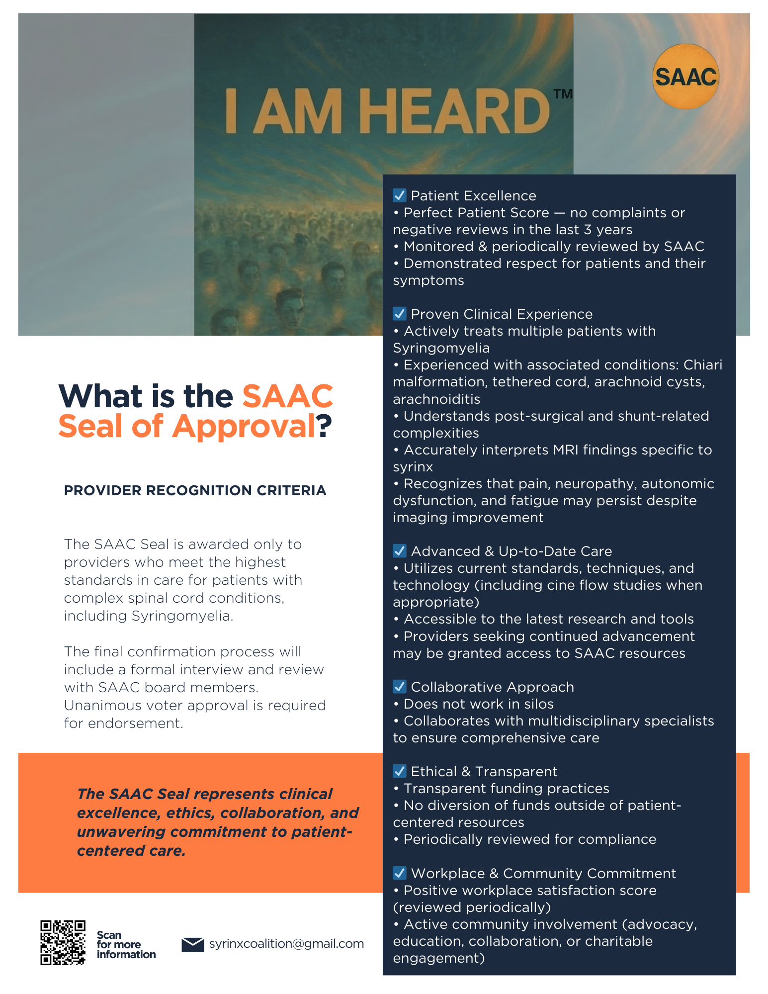 here will exist a directory of “saac approved ” providers who get this designation only after meeting the strictest of standards that all patients deserve access to. This list will transform how the patient accesses quality care. sTAY TUNED…. No more guessing. No more endless searching. Directions to the best care. now at the palm of your hands.